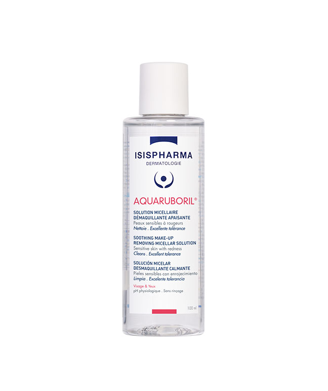 AQUARUBORIL® desmaquilla las pieles sensibles, reactivas o con rosácea, brindando sensación de confort y calma.